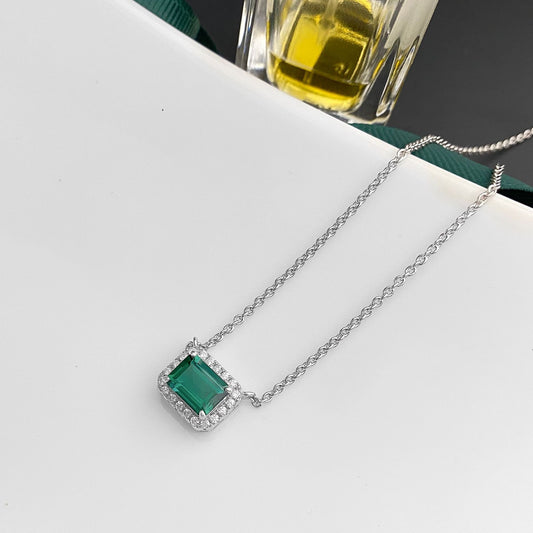 1 Carat Mini Green Lab-Created Emerald Halo Pendant | Minimalism Style May Birthstone Gift For Her