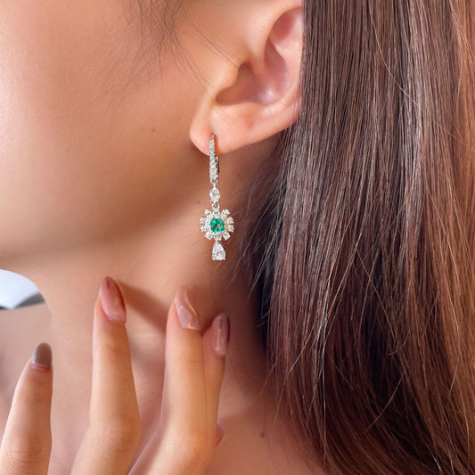 2 Carat Danity Tassel Green Lab-Created Emerald Halo Earring Minimalism Style May Birthstone Gift For Her