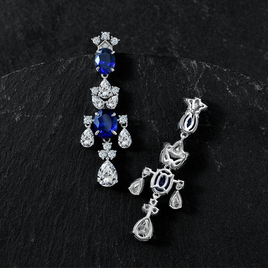 8 Carat Oval Cut Lab-Grown Sapphire Tassel Earring Best Gift For Sept Birthstone Gift