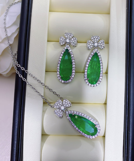 10*28mm Green Lucky Leaf Doublet Emerald Jewelry Set 18KGP