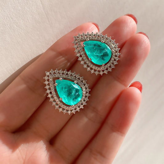 14*18mm Exotic Neon Vivid Blue Pear Cut Double Halo Blue Paraiba Simulant Jewelry Set