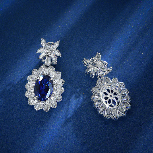 8 Carat Oval Cut Genuine Lab-Grown Blue Sapphire Tassel Earring Luxury Sept Birthstone Gift