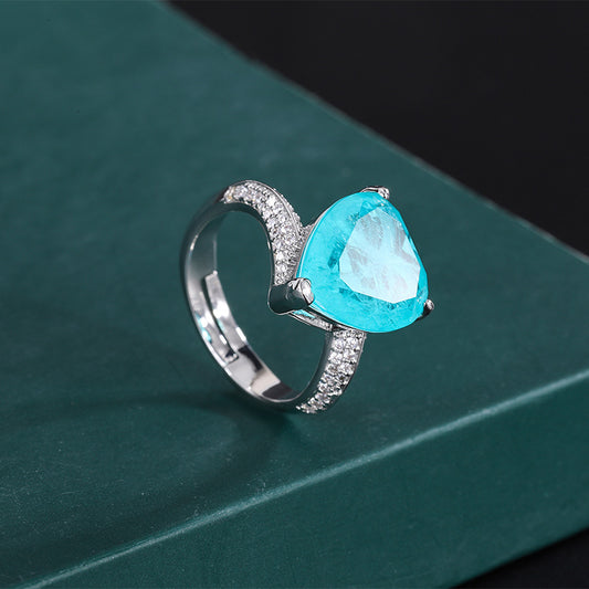 42*42mm Halo Heart Shape Blue Paraiba Simulant Jewelry Set
