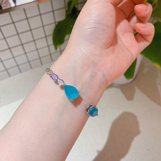 Exotic Neon Vivid Blue Pear Cut Paraiba Simulant Bangle 18KGP
